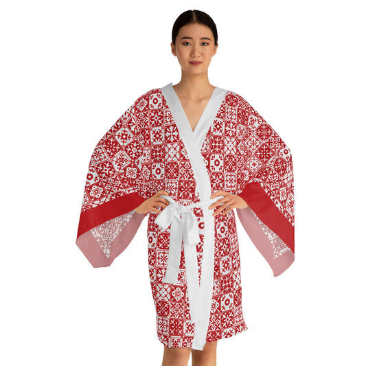 Mediterraneo Mosaic - Red - Small Print - Long Sleeve Kimono Robe - Chic Loungewear, Spa Outfit, Gift for Her, Inner Peace, Home Comfort Mediterraneo Mosaic - Red - Small Print - Long Sleeve Kimono Robe - Chic Loungewear, Spa Outfit, Gift for Her, Inner Peace, Home Comfort