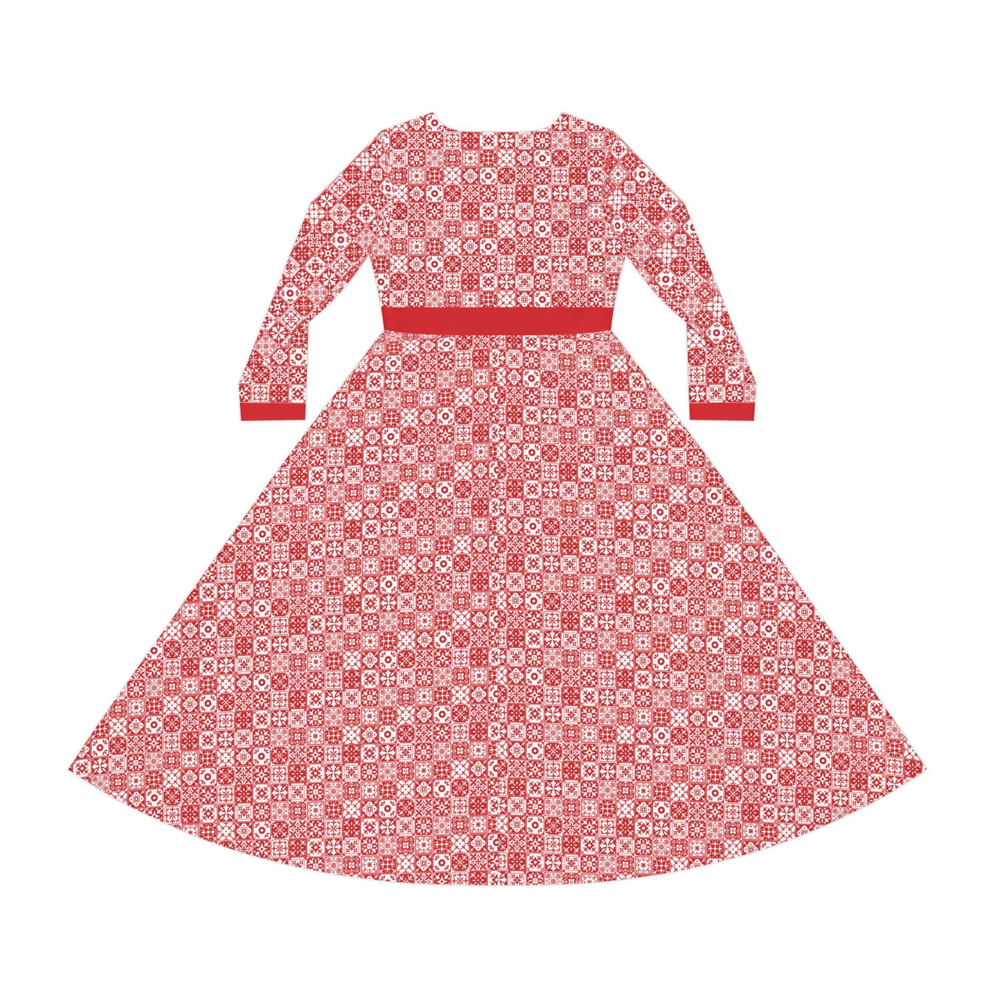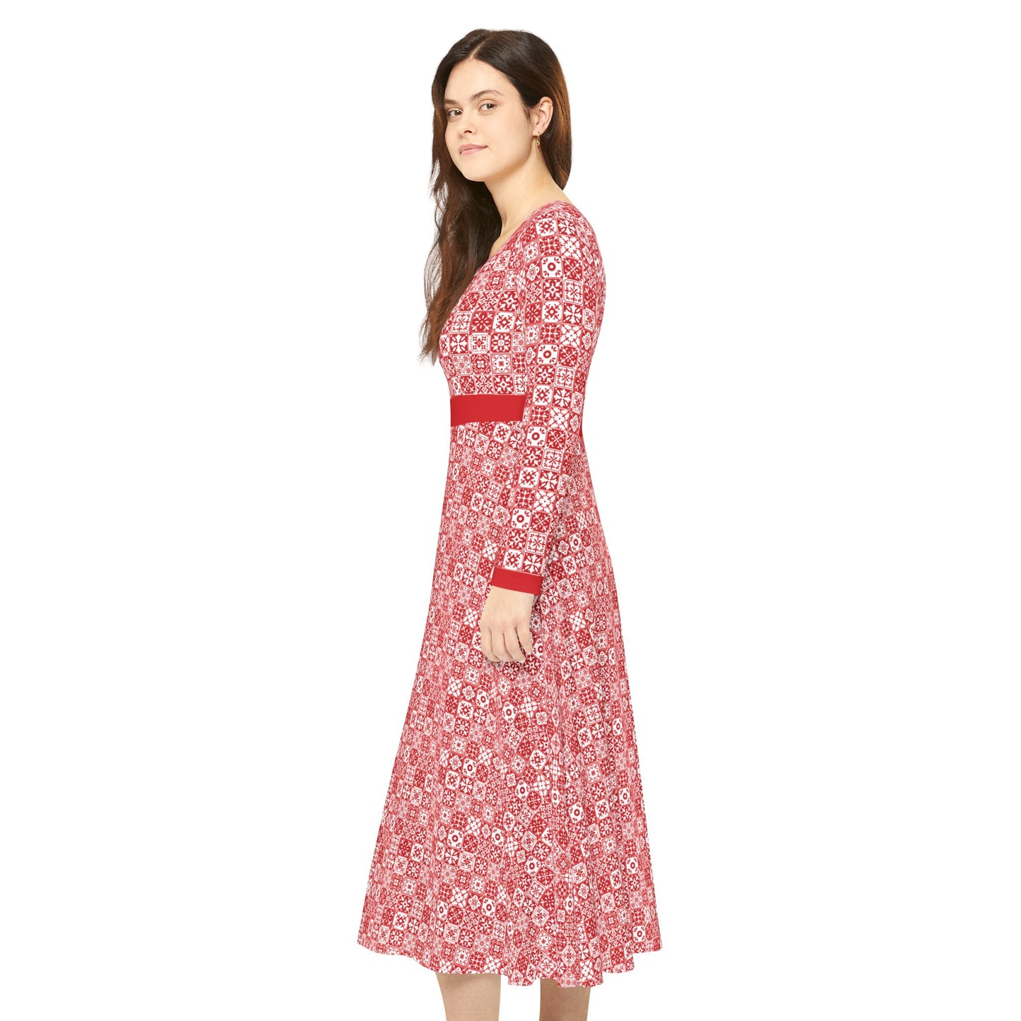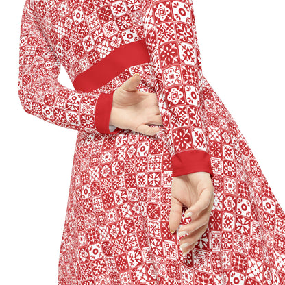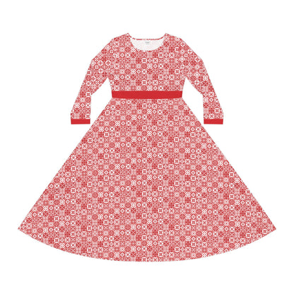 Elegant Women's Long Sleeve Dance Dress - Mediterraneo Mosaic - Red