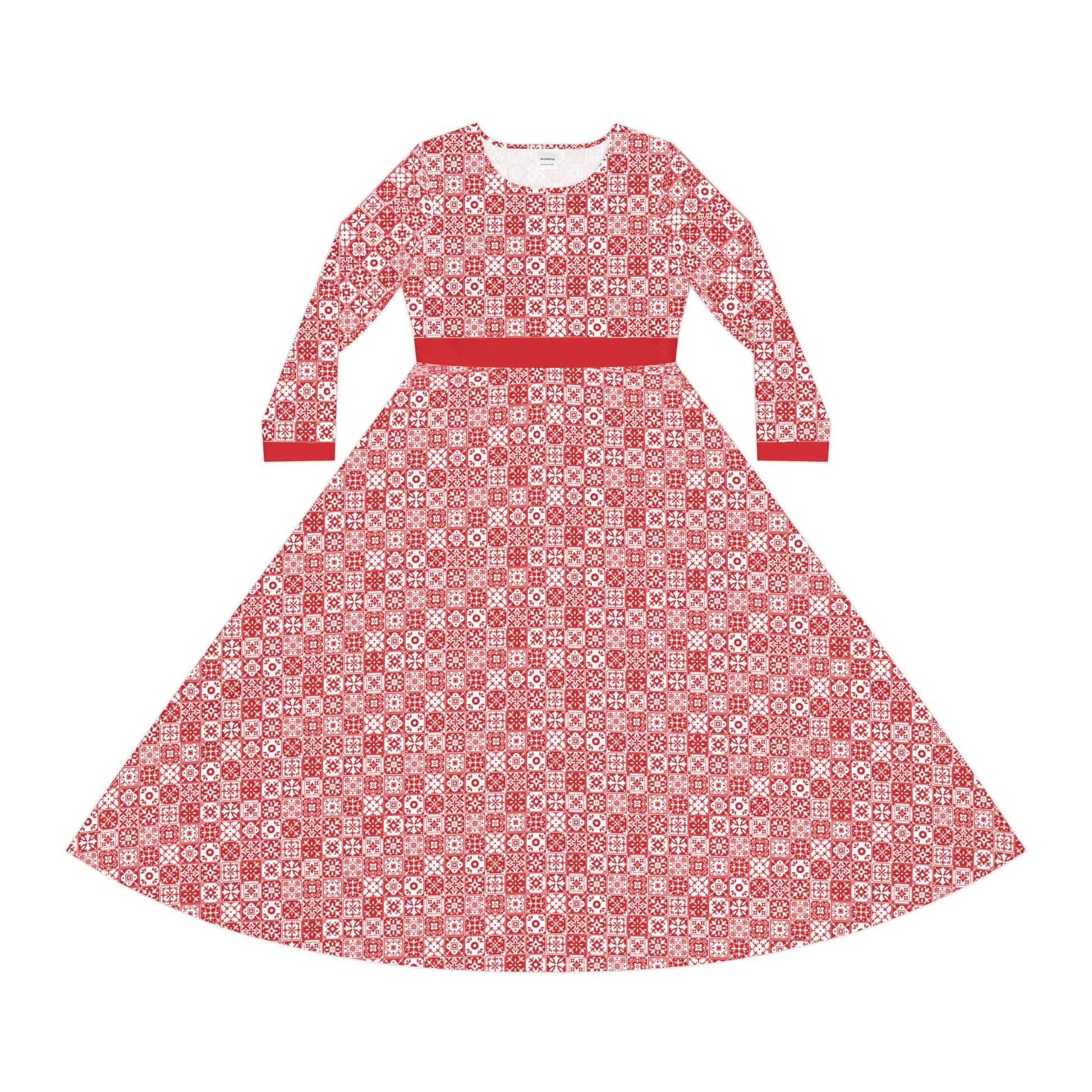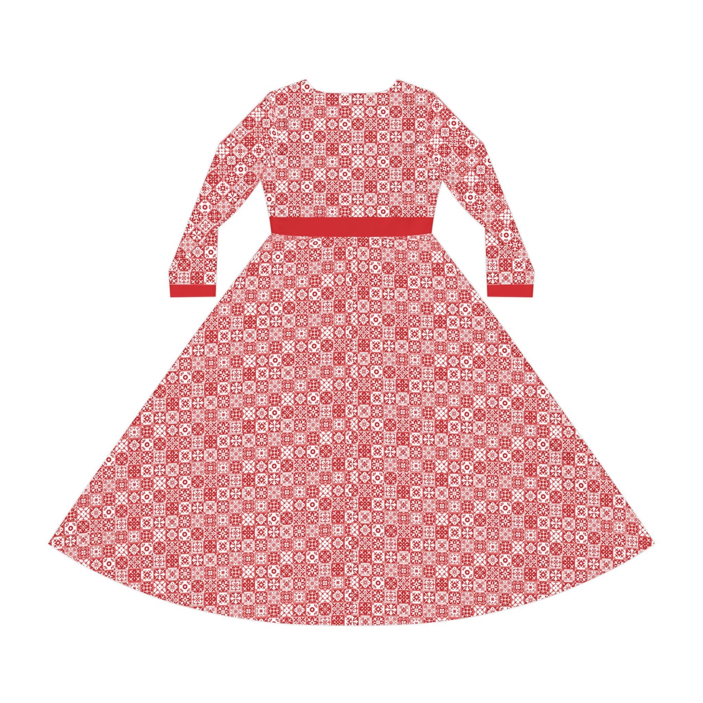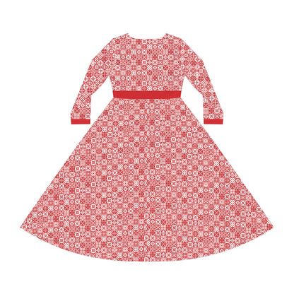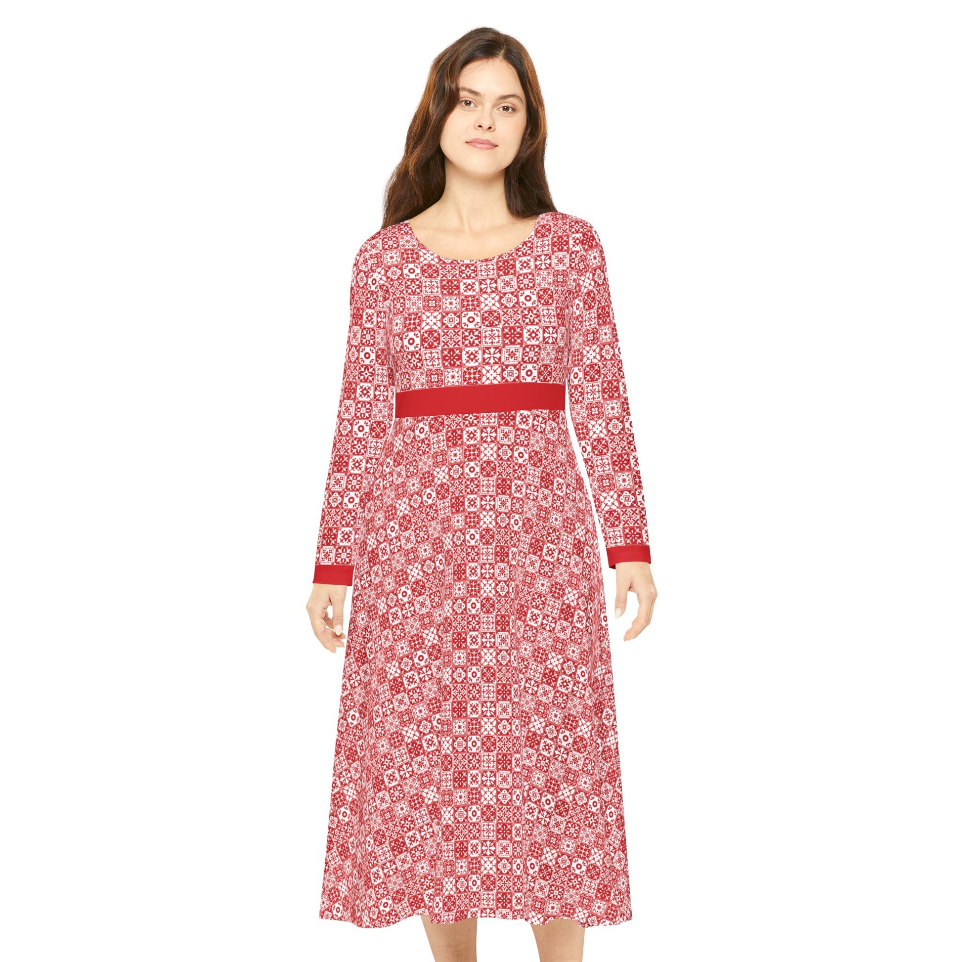 Elegant Women's Long Sleeve Dance Dress - Mediterraneo Mosaic - Red
