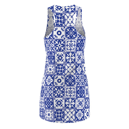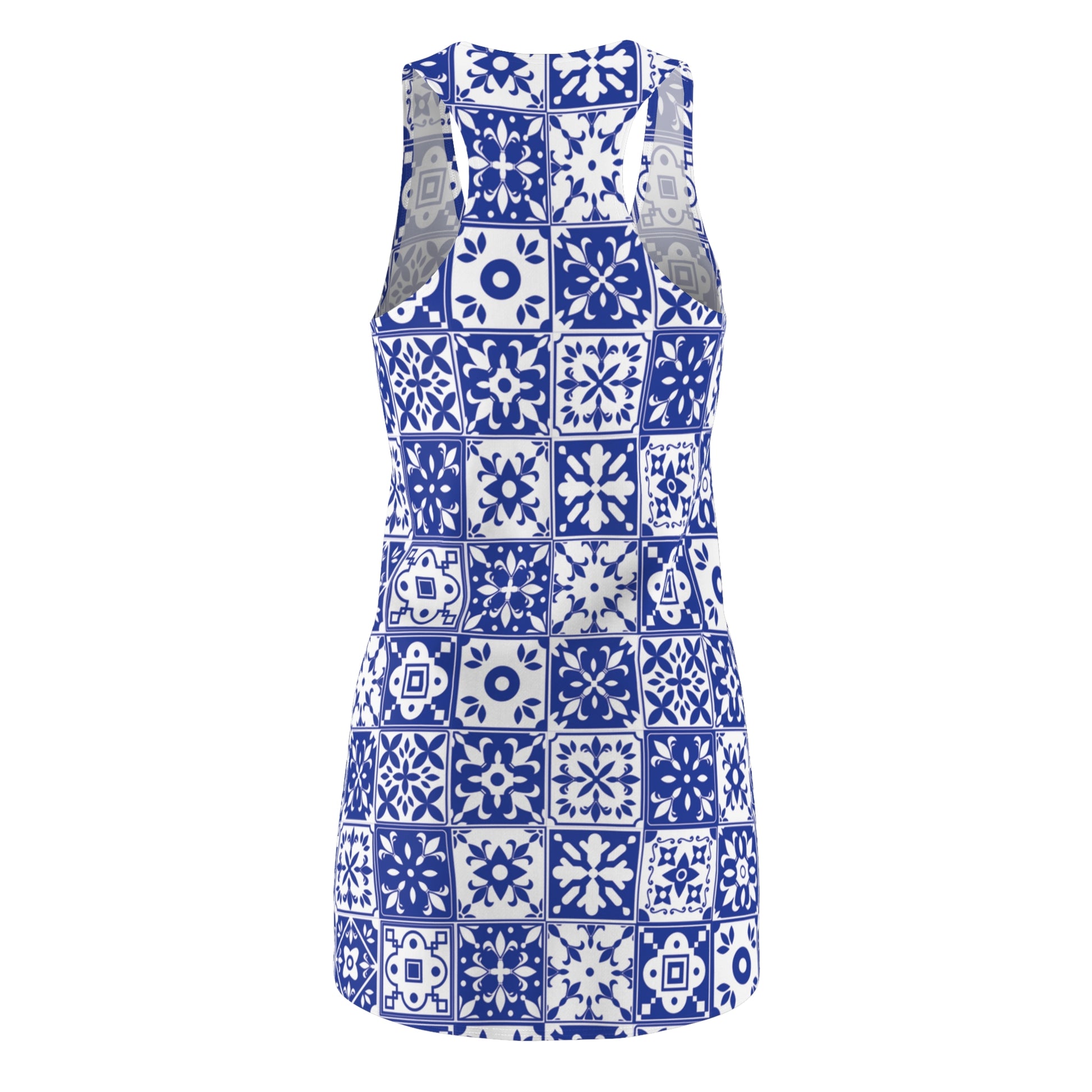 Mediterraneo Mosaic - Blue - Big Print - Racerback Dress for Summer Fun, Beach Wear, Vacation Style, Party Outfit, Ladies Sundress