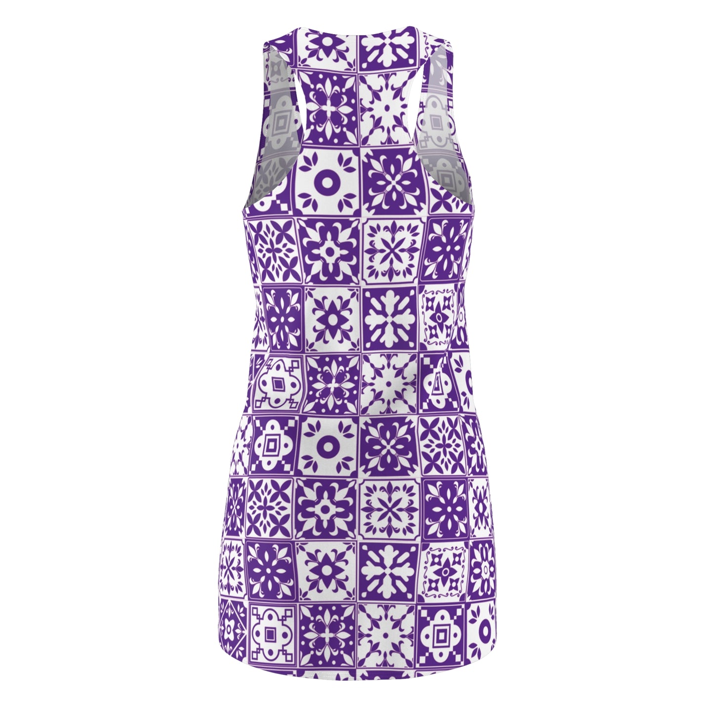 Mediterraneo Mosaic - Purple - Big Print - Racerback Dress for Summer Fun, Beach Wear, Vacation Style, Party Outfit, Ladies Sundress