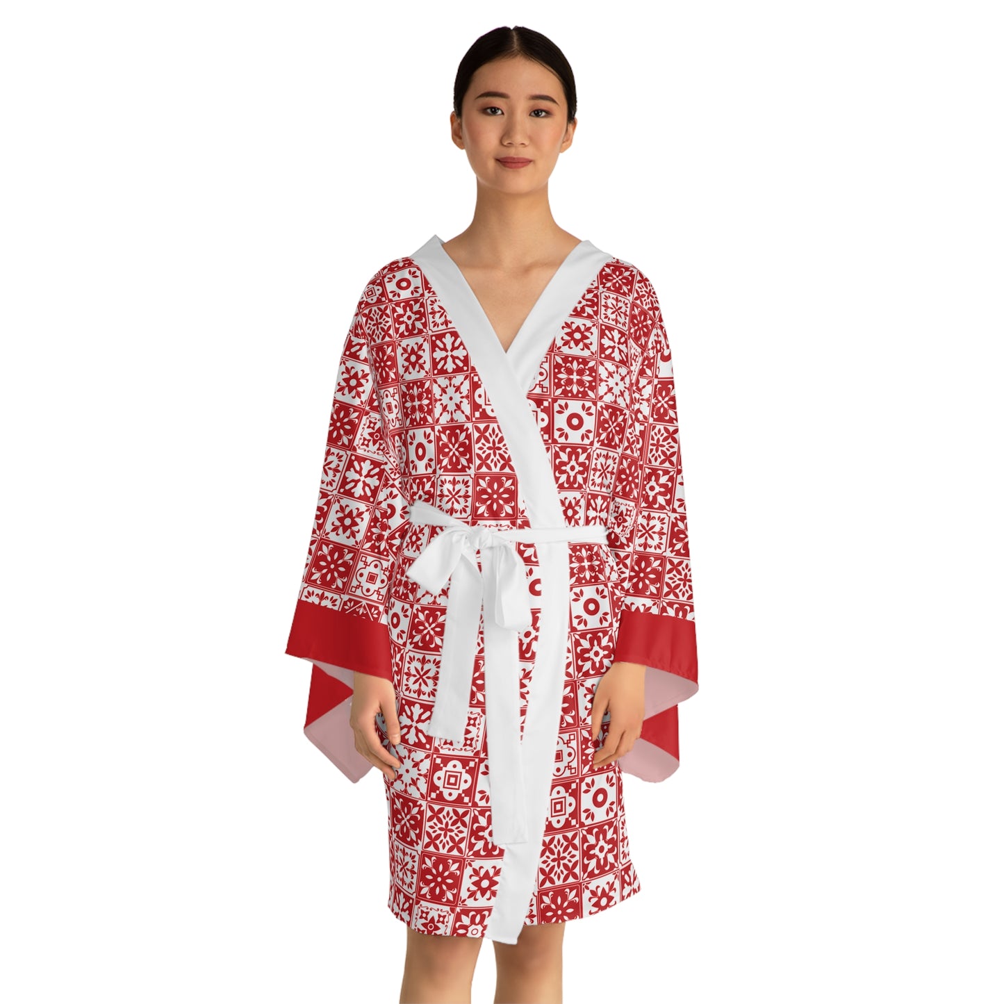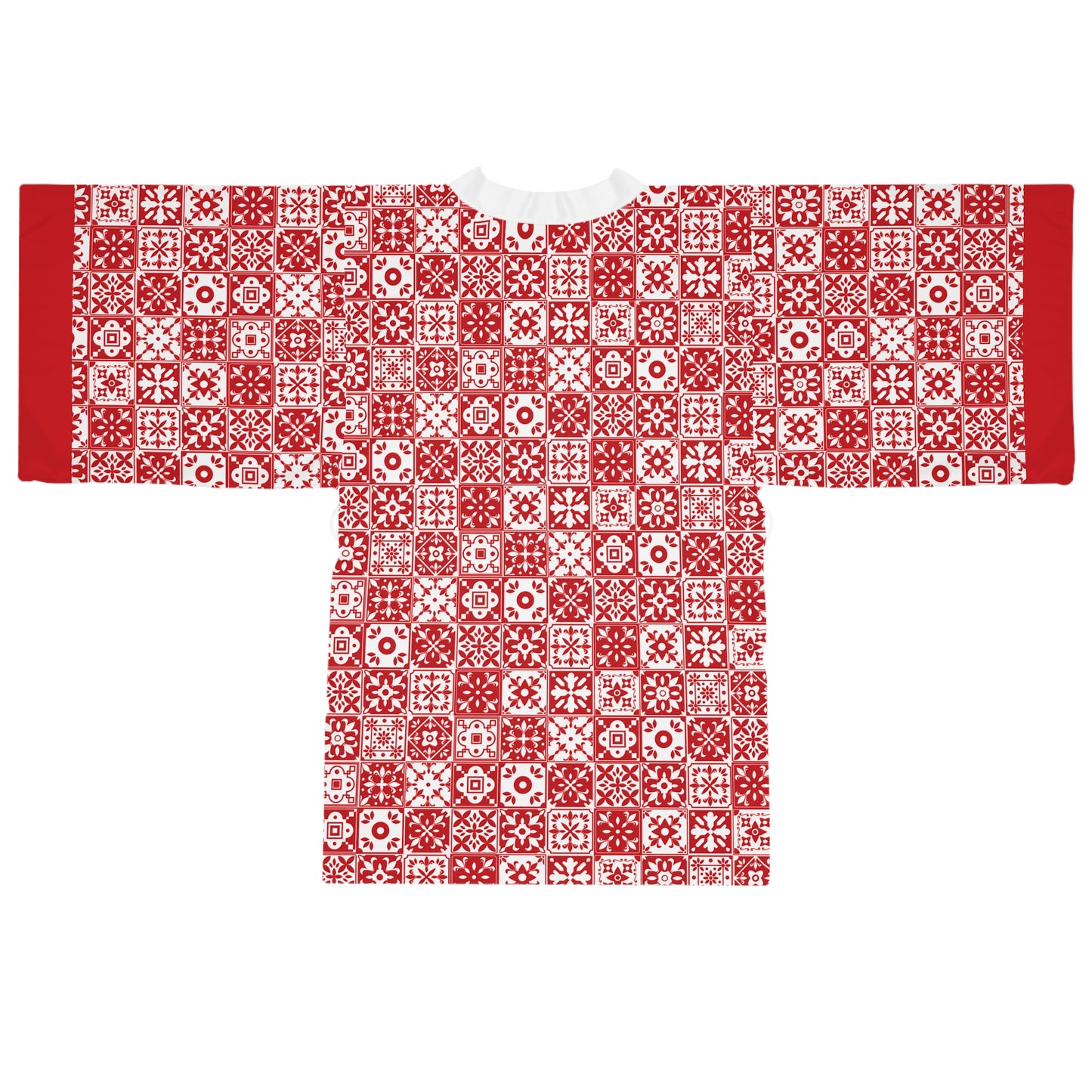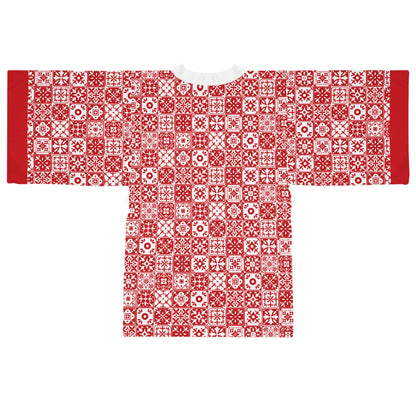 Mediterraneo Mosaic - Red - Big Print - Long Sleeve Kimono Robe - Chic Loungewear, Spa Outfit, Gift for Her, Inner Peace, Home Comfort